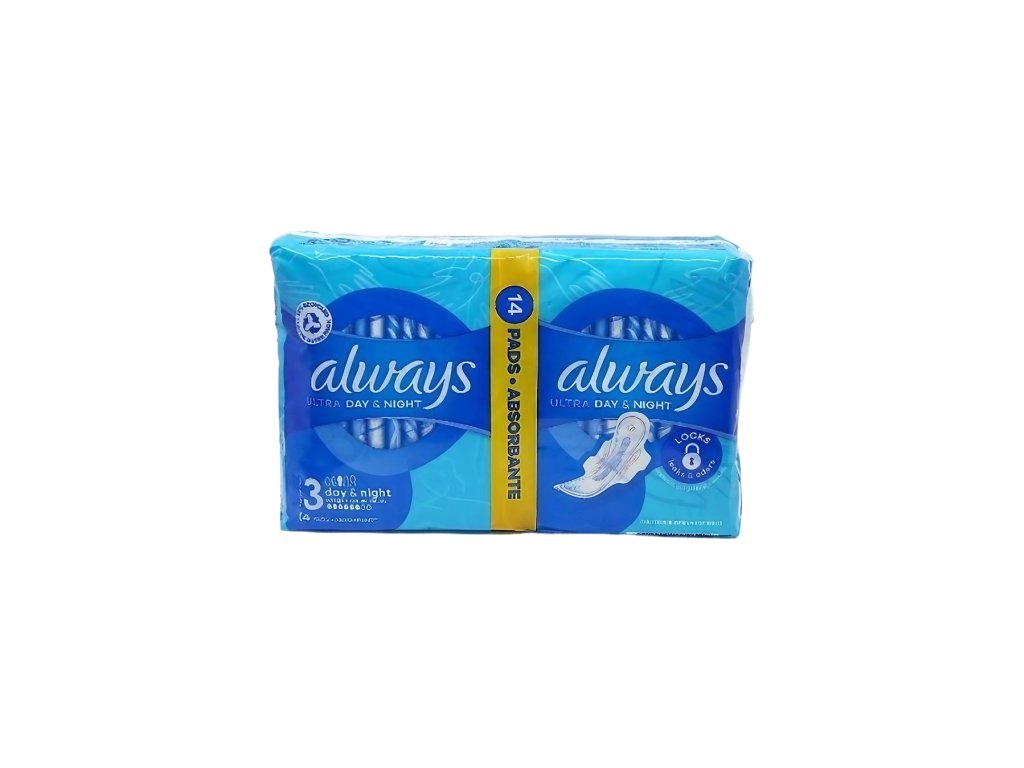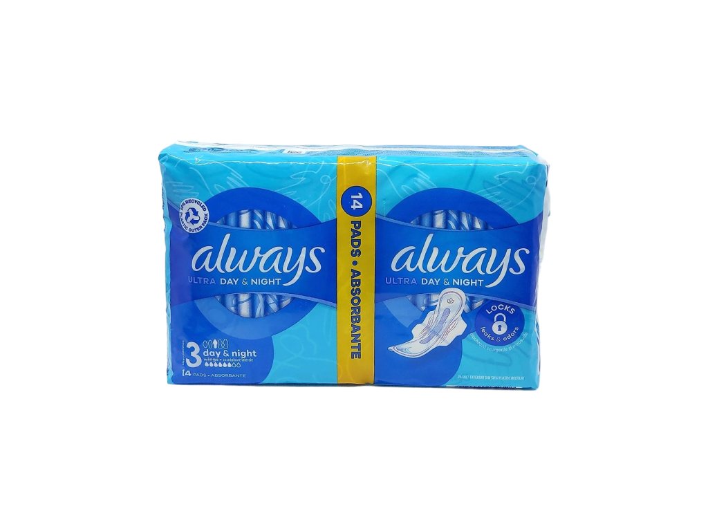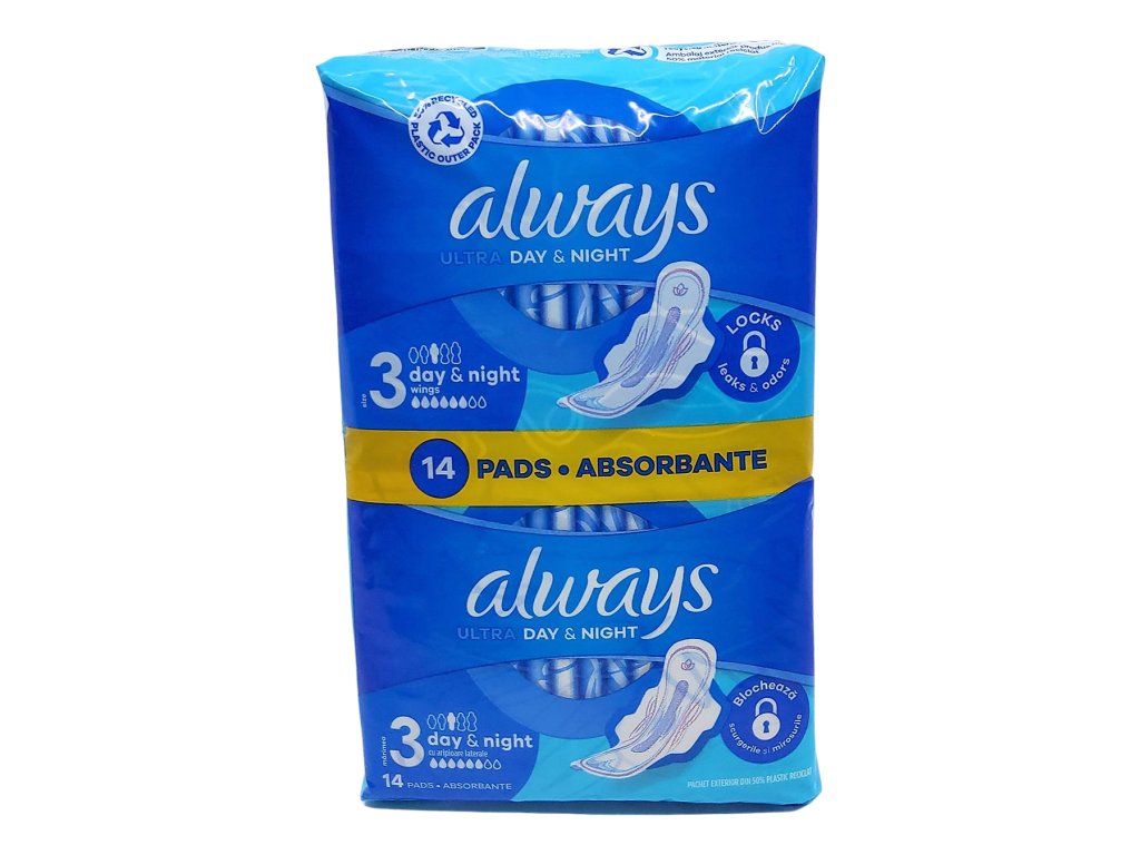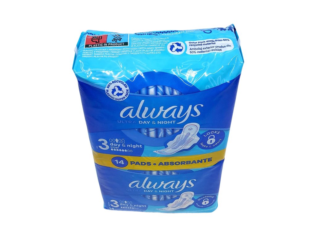 Always Ultra Day & Night sú ideálne pre ženy, ktoré hľadajú spoľahlivú ochranu aj počas noci alebo pri silnejšom krvácaní. Balenie obsahuje 14 kusov hygienických vložiek, ktoré sú balené prakticky a hygienicky – pripravené poslúžiť presne vtedy, keď ich potrebujete.
