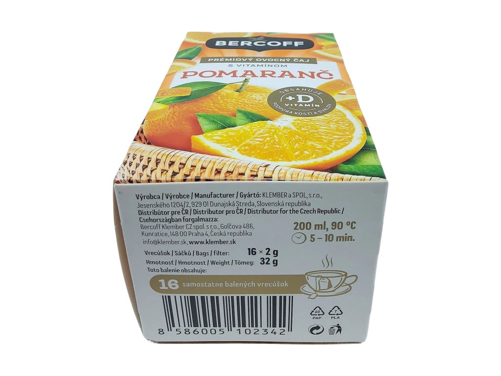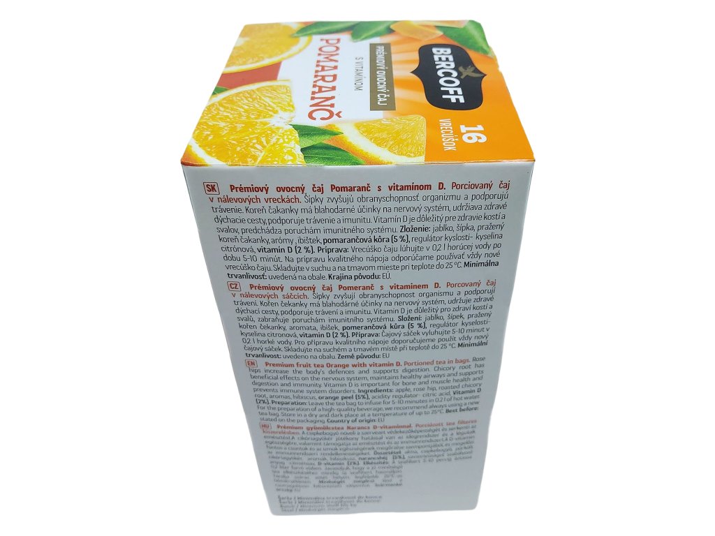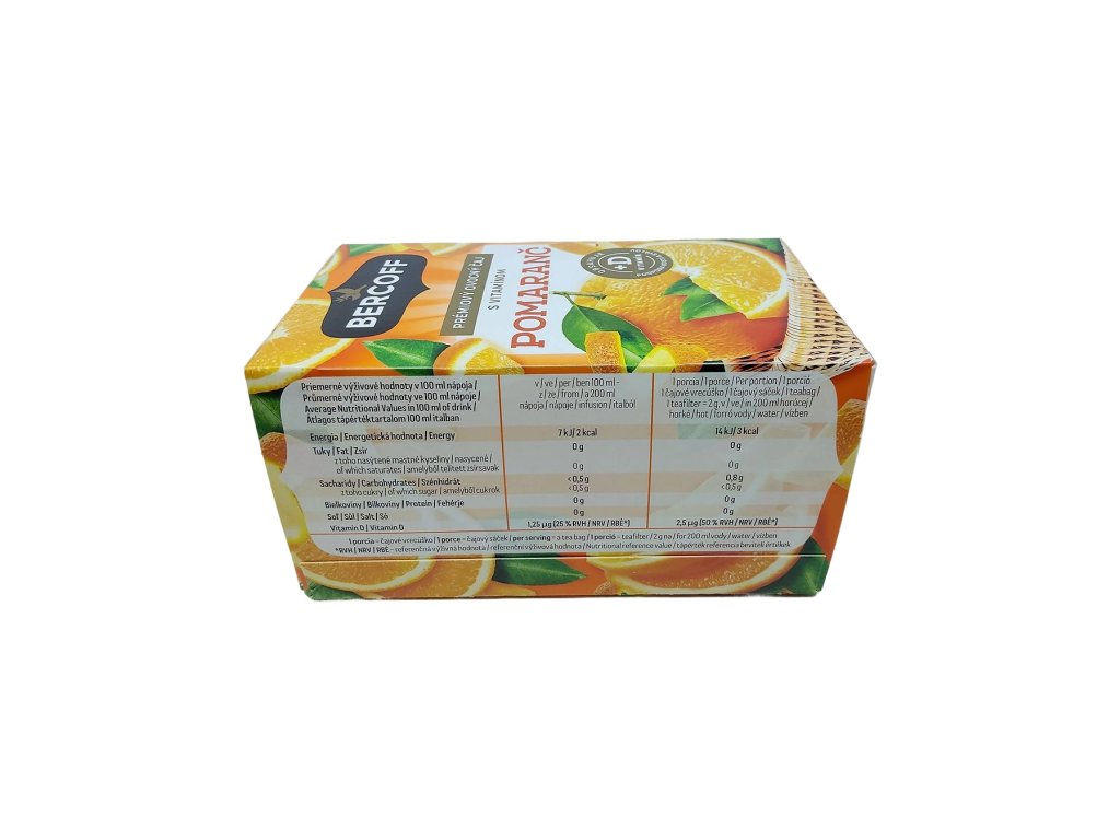 Bercoff Pomaranč s vitamínom D je dokonalým spoločníkom na jesenné a zimné večery, ale rovnako poteší aj v podobe ľahko vychladeného nápoja, ktorý si zachováva svoju osviežujúcu pomarančovú chuť. Je to čaj, ktorý vás aj pri hektickom dni zanesie aspoň na okamih kamsi pod pomarančovník zalievaný teplými lúčmi – jednoducho malý kúsok slnka ukrytý v elegantnom vrecúšku.