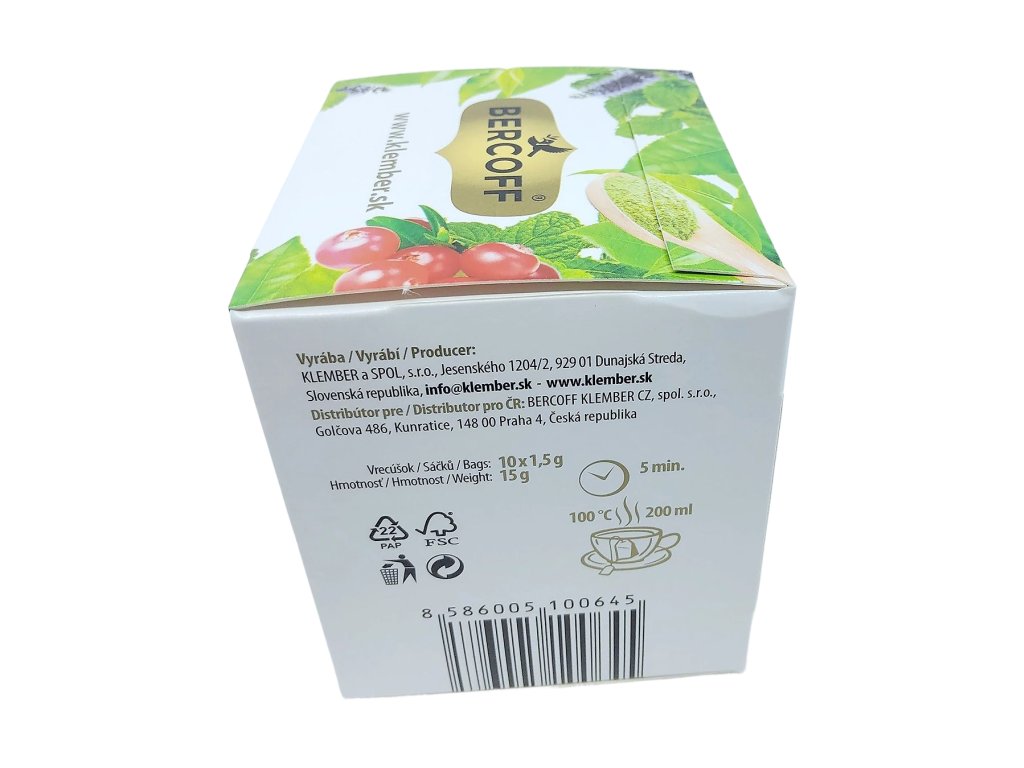 Zloženie: mäta pieporná (47, 5%), citrónová tráva, listy mäty klasnatej (15%), škorica, zelený čaj Matcha (4%), prírodné arómy, vitamín C (2, 5%), brusnice (1%), limetková kôra
