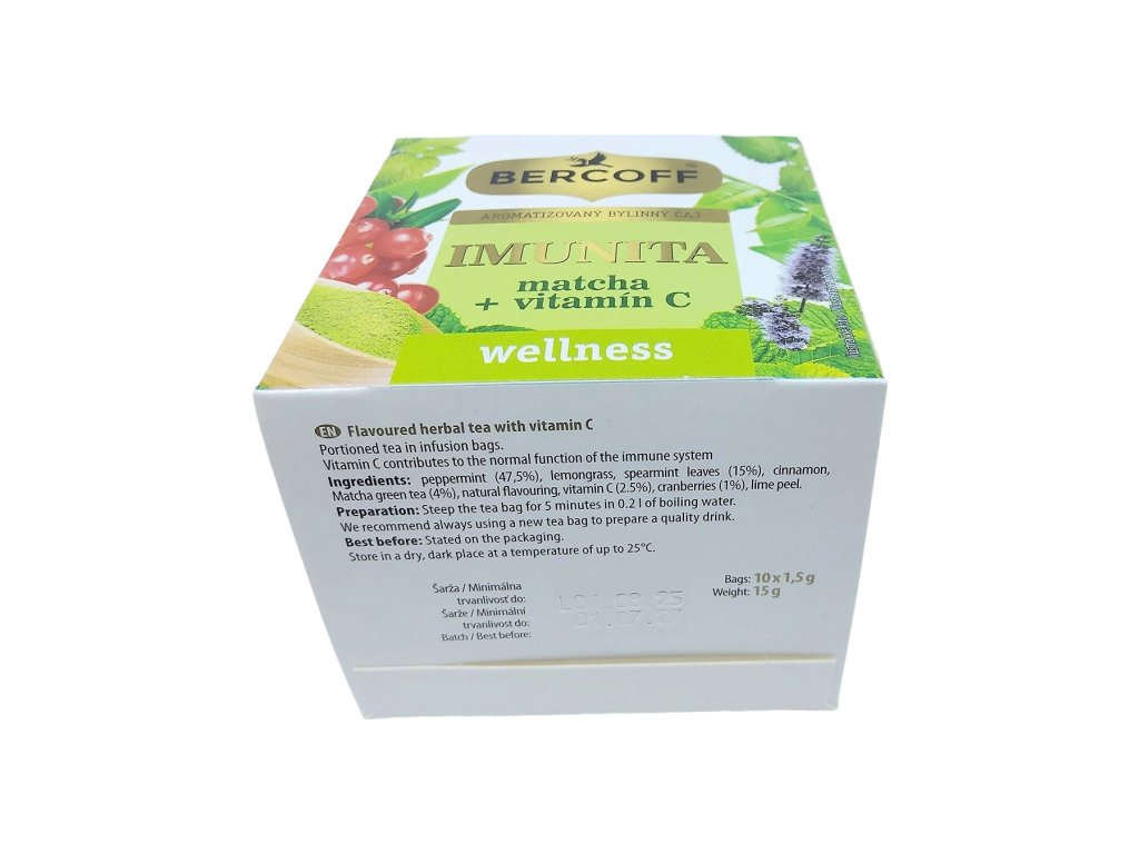 Bercoff Imunita & Matcha + vitamín C je čajom pre tých, ktorí chcú spojiť starostlivosť o telo s príjemným rituálom pitia čaju. Každá šálka je malou dávkou energie a podpory imunitného systému, ktorá vám dodá pocit harmónie a sviežosti počas celého dňa.