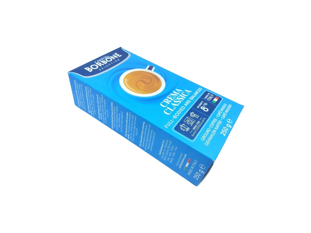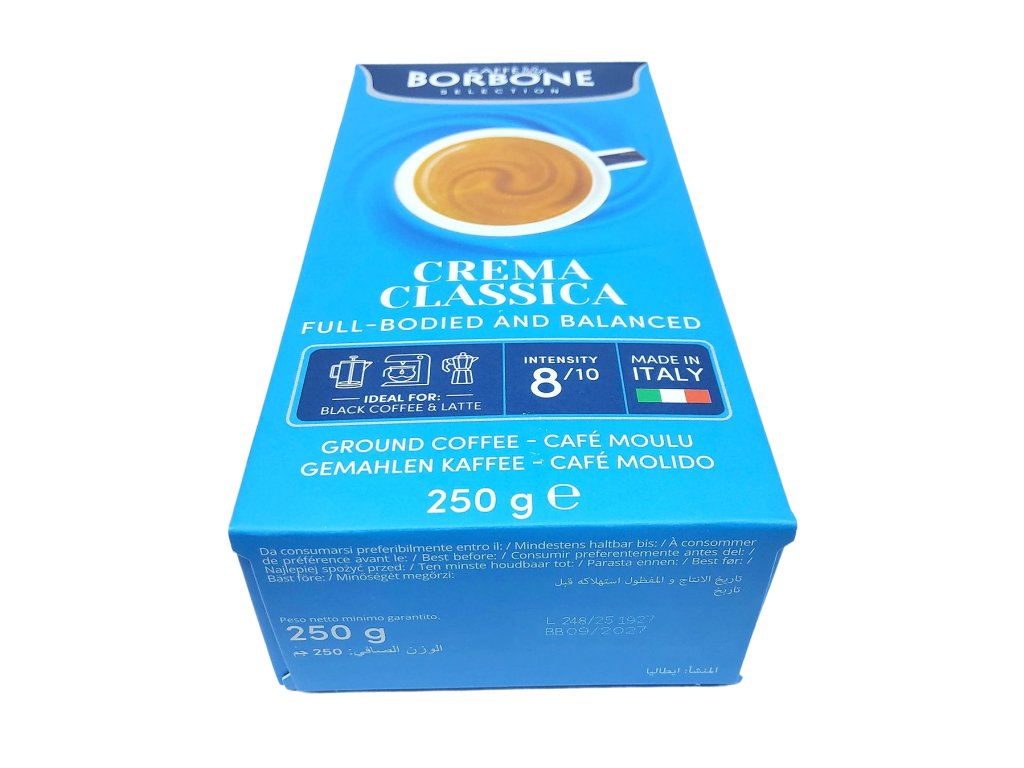Mletá forma umožňuje jednoduchú prípravu v moka kanvičke, kávovare aj klasicky zaliatím – vždy však s výsledkom, ktorý pripomína autentické talianske espresso. Caffé Borbone Crema Classica je káva pre tých, ktorí hľadajú istotu, plnú chuť a každodenný rituál s príjemnou arómou a krémovým záverom. Stačí šálka a bežný deň sa na chvíľu zmení na malú kávovú pauzu v Taliansku.