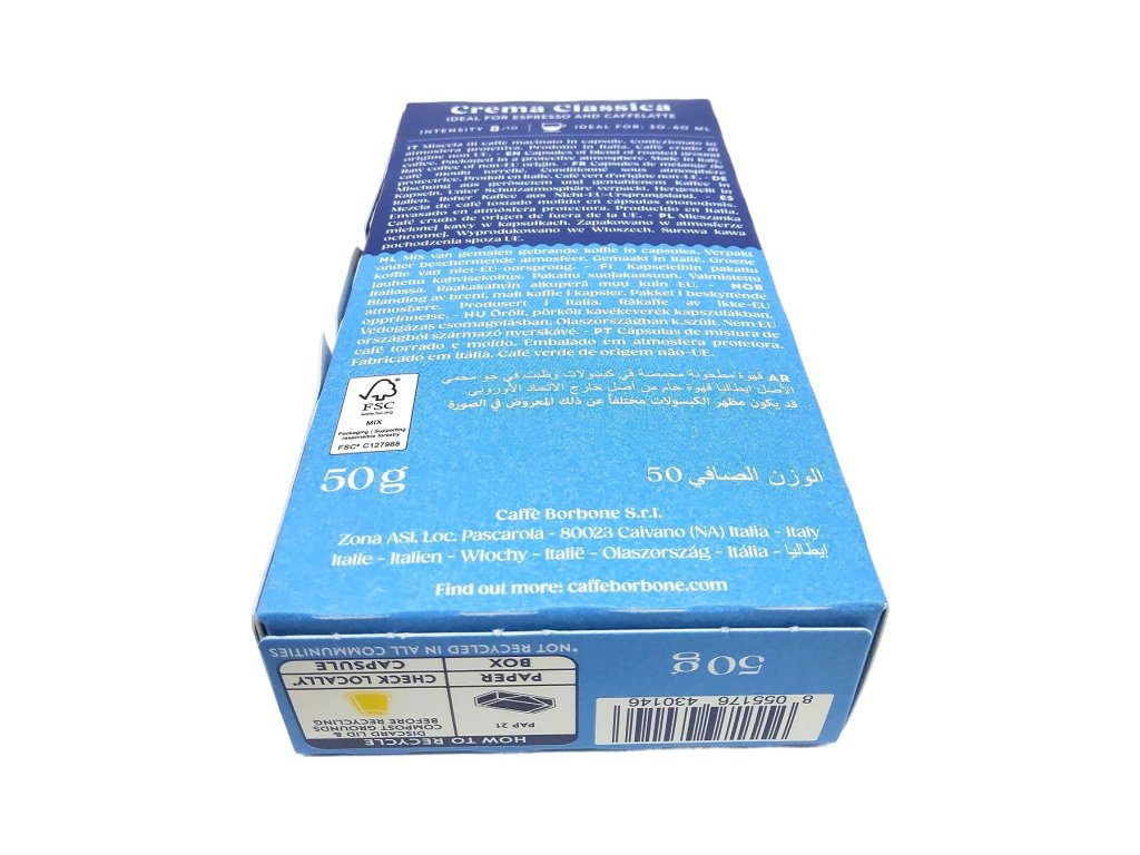 Každá kapsula je starostlivo uzavretá, aby si káva zachovala maximálnu čerstvosť, arómu a bohatú chuť až do momentu prípravy. Kompatibilita so systémom Nespresso zaručuje pohodlnú a rýchlu prípravu s konzistentným výsledkom pri každom šálku. Balenie obsahuje 10 kapsúl, ktoré vám umožnia vychutnať si kvalitné talianske espresso kedykoľvek a kdekoľvek. Caffé Borbone Crema Classica je ideálnou voľbou pre tých, ktorí hľadajú tradičnú taliansku kávu s charakterom, ktorá Vás očarí už od prvého dúšku