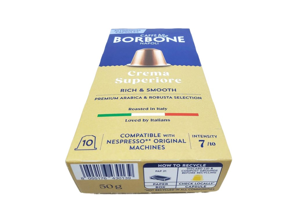 Kompatibilita so systémom Nespresso zaručuje jednoduchú a rýchlu prípravu s konzistentným výsledkom pri každom šálku. Balenie obsahuje 10 kapsúl, ktoré Vám umožnia vychutnať si kávu presne vtedy, keď na ňu dostanete chuť – či už ráno na naštartovanie dňa, alebo počas pokojnej popoludňajšej prestávky. Caffé Borbone Crema Superiore je ideálnou voľbou pre tých, ktorí hľadajú krémové, plné a autentické talianske espresso s charakterom, ktoré si Vás získa už od prvého stlačenia tlačidla