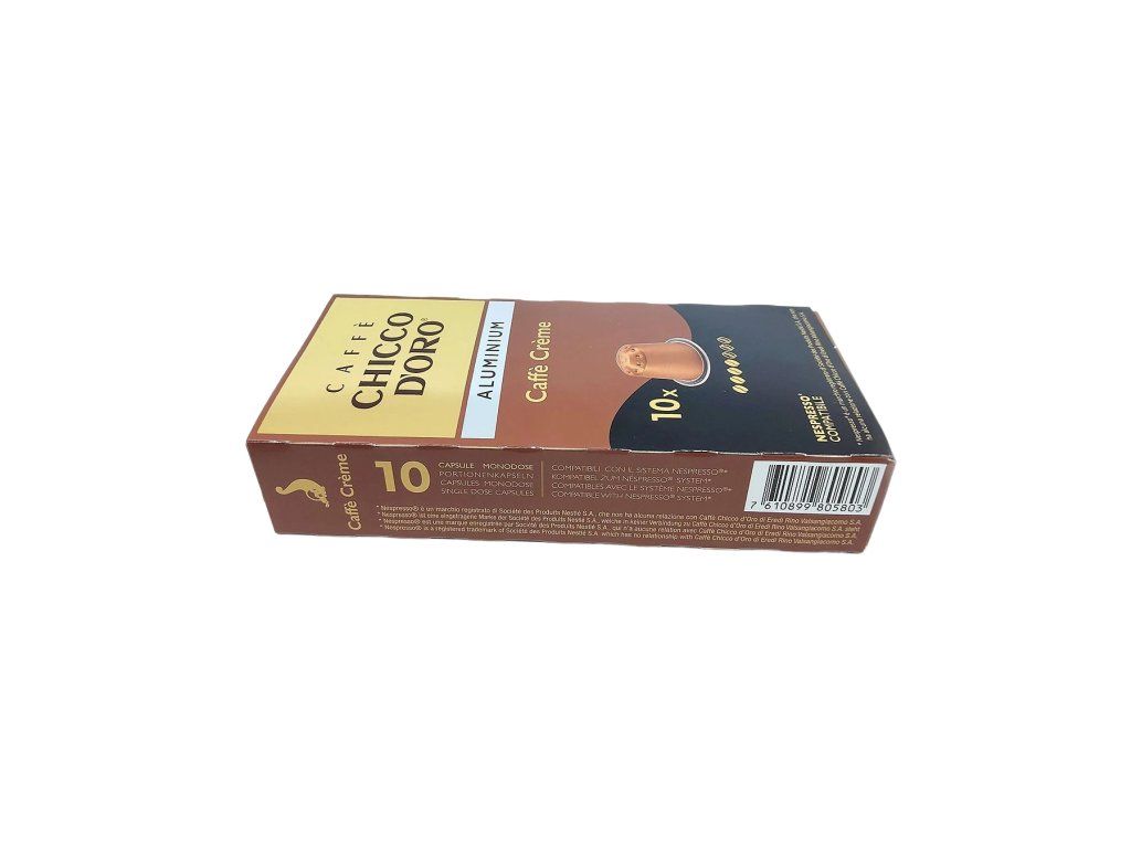 Caffè Créme sa vyznačuje hladkou textúrou a hustou, trvácnou cremou, ktorá v šálke pôsobí lákavo a elegantne. Či už si pripravíte klasické espresso alebo aromatické lungo, môžete sa spoľahnúť na mimoriadne príjemný, jemný charakter a stabilnú, konzistentnú chuť pri každej príprave. Kapsuly sú plne kompatibilné so systémom Nespresso Original, takže si kvalitnú kávu pripravíte jednoducho a pohodlne doma či v kancelárii. Chicco d’Oro Caffé Créme je voľbou pre tých, ktorí hľadajú spoľahlivú, krémovú kávu s každodenným charakterom a príjemnou eleganciou v každej šálke.