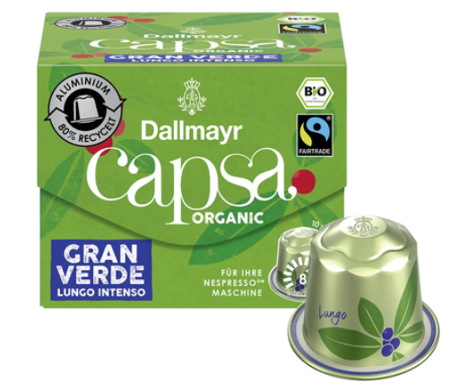 Kapsule sú navyše kompatibilné s kávovarmi Nespresso*, takže si túto výnimočnú organickú kávu pripravíte jednoducho a rýchlo – doma aj v kancelárii. Dallmayr Gran Verde Lungo Intenso je ideálnou voľbou pre milovníkov intenzívneho lunga, ktorí hľadajú plnú chuť, dlhý dozvuk a zároveň si potrpia na kvalitu s ekologickým pôvodom. Je to šálka, ktorá spája silu, eleganciu a rešpekt k prírode v dokonalej rovnováhe.