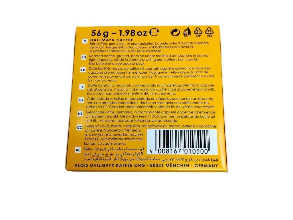 Veľkou výhodou je, že kapsule sú kompatibilné s kávovarmi Nespresso*, takže si túto výnimočnú chuť môžete pripraviť rýchlo a pohodlne vo Vašom obľúbenom kávovare. Ak hľadáte kávu, ktorá je jemná, čistá, mäkká a zároveň chuťovo zaujímavá, Dallmayr Lungo Belluno premení každú šálku na malý, elegantný rituál plný harmónie.