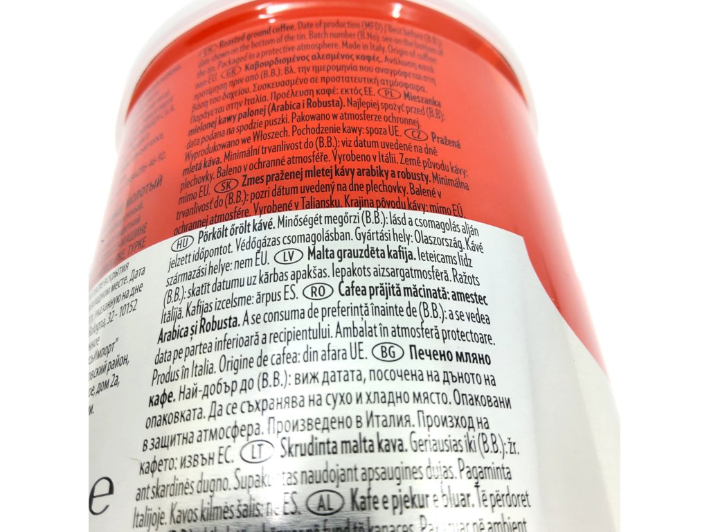 Produkt je balený v elegantnej kovovej dóze, ktorá chráni arómu a čerstvosť kávy dlhšie než klasické vrecko. Svojím vzhľadom pôsobí luxusne a môže byť aj skvelým darčekom pre milovníkov talianskej kávy.