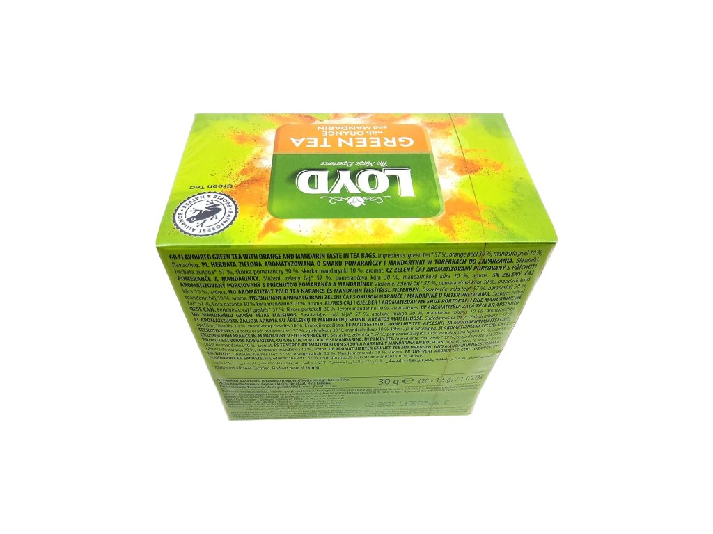 Zelený čaj Loyd s príchuťou pomaranča a mandarínky je pozvaním na cestu plnú vôní, farieb a jemného pôžitku. Orientálna sofistikovanosť zeleného čaju sa v ňom snúbi s aromatickou sladkosťou citrusových plodov, ktoré ako keby v sebe niesli dotyk teplého stredomorského slnka.