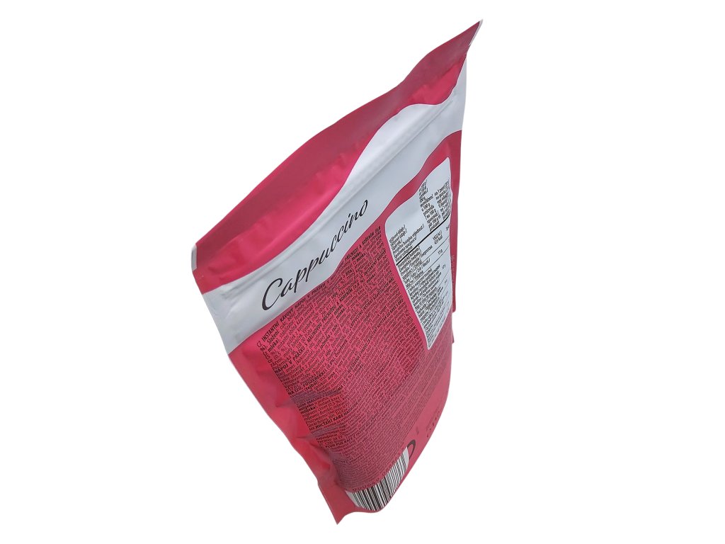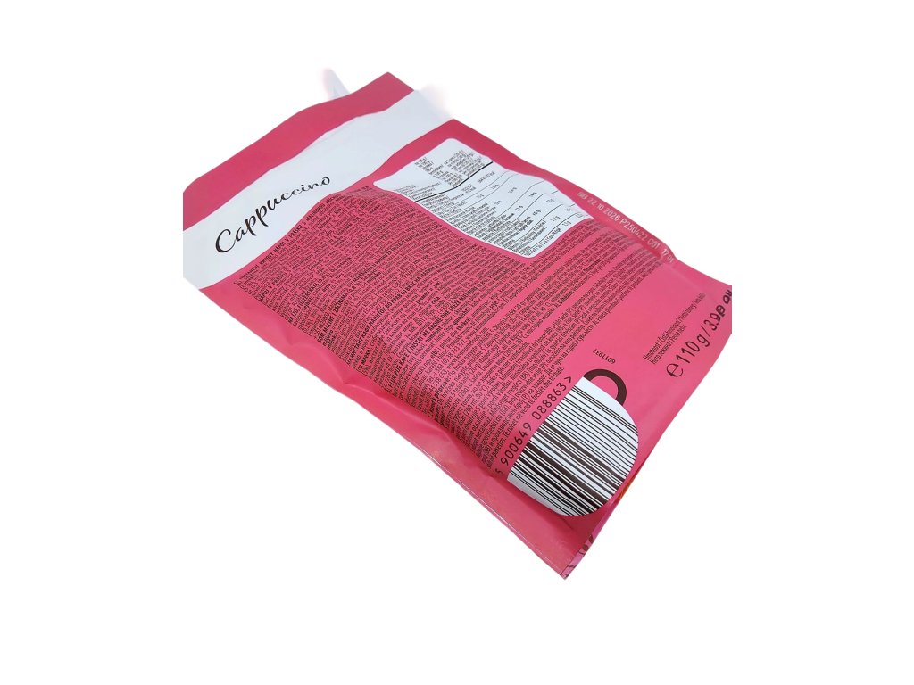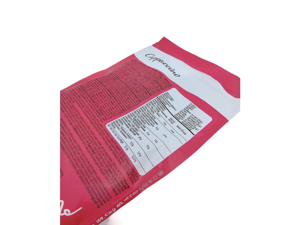 Zloženie: cukor, bielidlo [kokosový olej, sušené odstredené mlieko , srvátkový prášok (z mlieka ), stabilizátor: fosforečnany draselné], srvátkový permeát (z mlieka ), instantná káva (5 %), instantná cereálna káva (extrakt z praženého jačmeňa a raže ), arómy, soľ, mletá škorica (0,5 %), koncentrovaný prášok z malinovej šťavy (0,2 %), mletý kardamóm (0,1 %), mletý zázvor, mleté klinčeky. Výrobok môže obsahovať sóju.