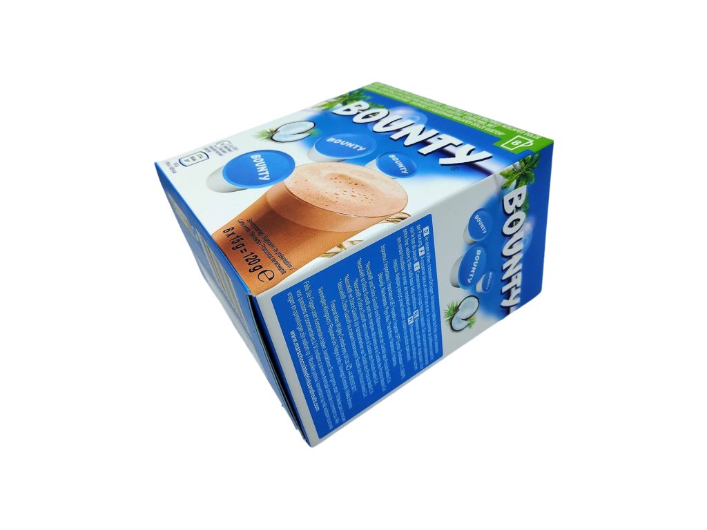 Chuťový profil Bounty je príjemne vyvážený – čokoláda je hebká a plná, kokos dodáva exotický nádych a jemnú sladkosť, ktorá nepôsobí ťažko. Na povrchu sa vytvára lahodná krémová pena, ktorá dodáva nápoju zamatovú textúru a robí z každej šálky malý dezertový rituál. Je to ideálna voľba pre chvíle oddychu, keď si chcete dopriať niečo sladké bez nutnosti siahať po klasickom dezerte.