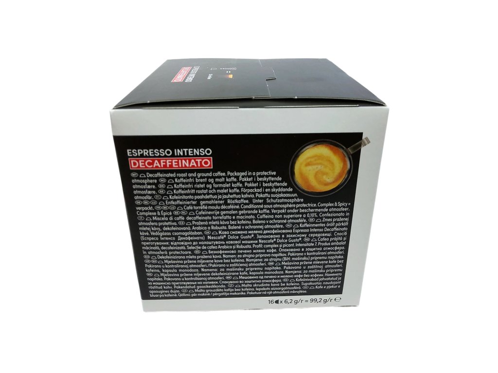 Objavte pôžitok z espressa bez kompromisov s NESCAFÉ Dolce Gusto Espresso Intenso Decaffeinato – kávovými kapsulami, ktoré dokazujú, že aj káva bez kofeínu môže byť plná chuti, arómy a charakteru. Táto elegantná malá šálka s objemom 50 ml je stvorená pre chvíle, keď si chcete dopriať intenzívny kávový zážitok bez povzbudzujúcich účinkov kofeínu, no s rovnakým dôrazom na kvalitu a pôžitok.