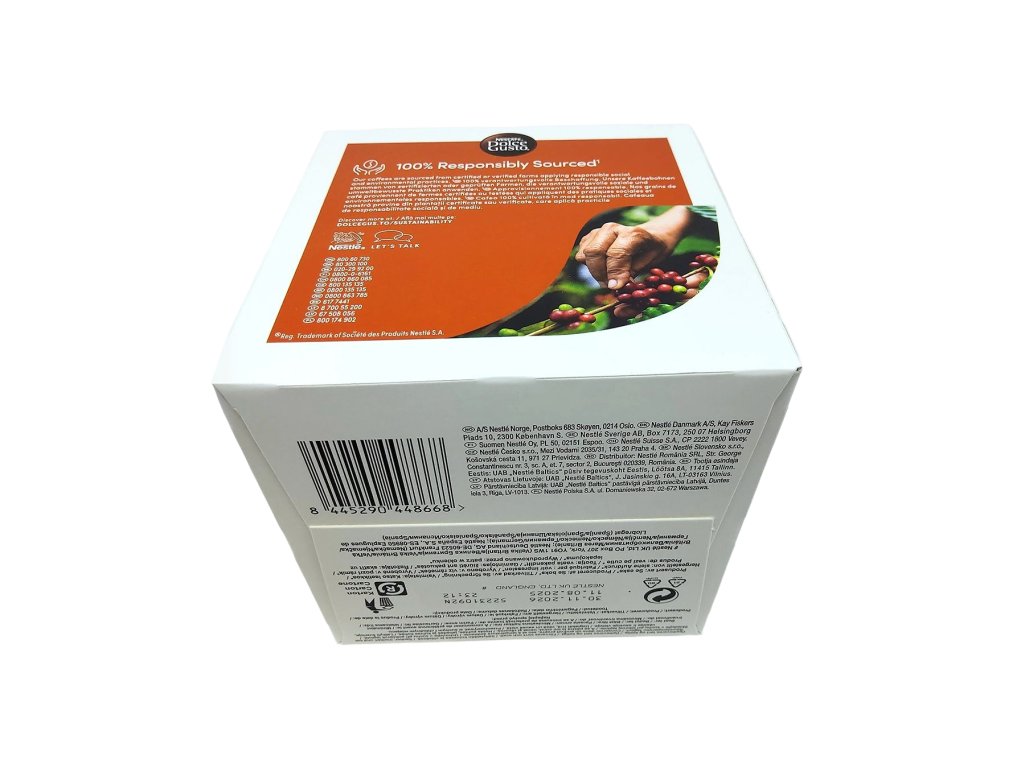 Kapsuly sú hermeticky uzavreté, vďaka čomu si káva zachováva čerstvosť, arómu a chuť až do samotného momentu prípravy. Sú navrhnuté presne pre kávovary Nescafé Dolce Gusto, ktoré zabezpečia správny tlak a konzistentnú kvalitu každej šálky – jednoducho, rýchlo a bez námahy.