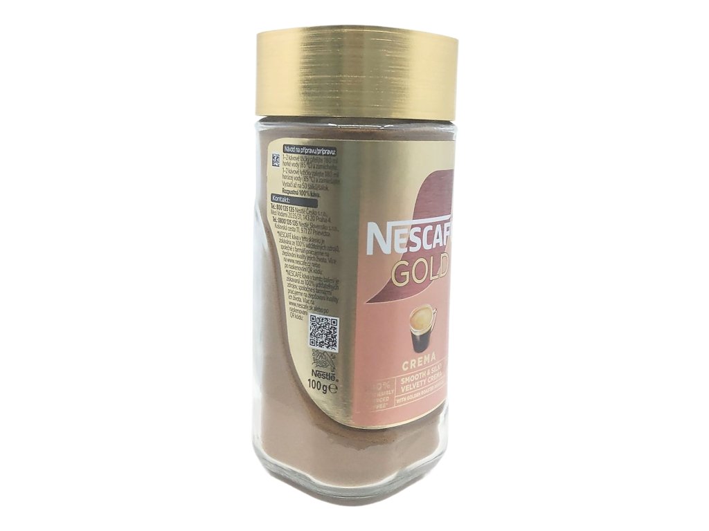 Instantná káva NESCAFÉ GOLD Crema je vyrobená z kávových zŕn prvotriednej kvality s vysokým podielom Arabiky s jemnou chuťou. Vzduchové bublinky vytvárajúce cremu. Sú uzamknuté už počas výroby vnútri jemného kávového prášku a po zaliatí horúcou vodou vystupujú na hladinu a vyčaria jemnú krémovú penu.