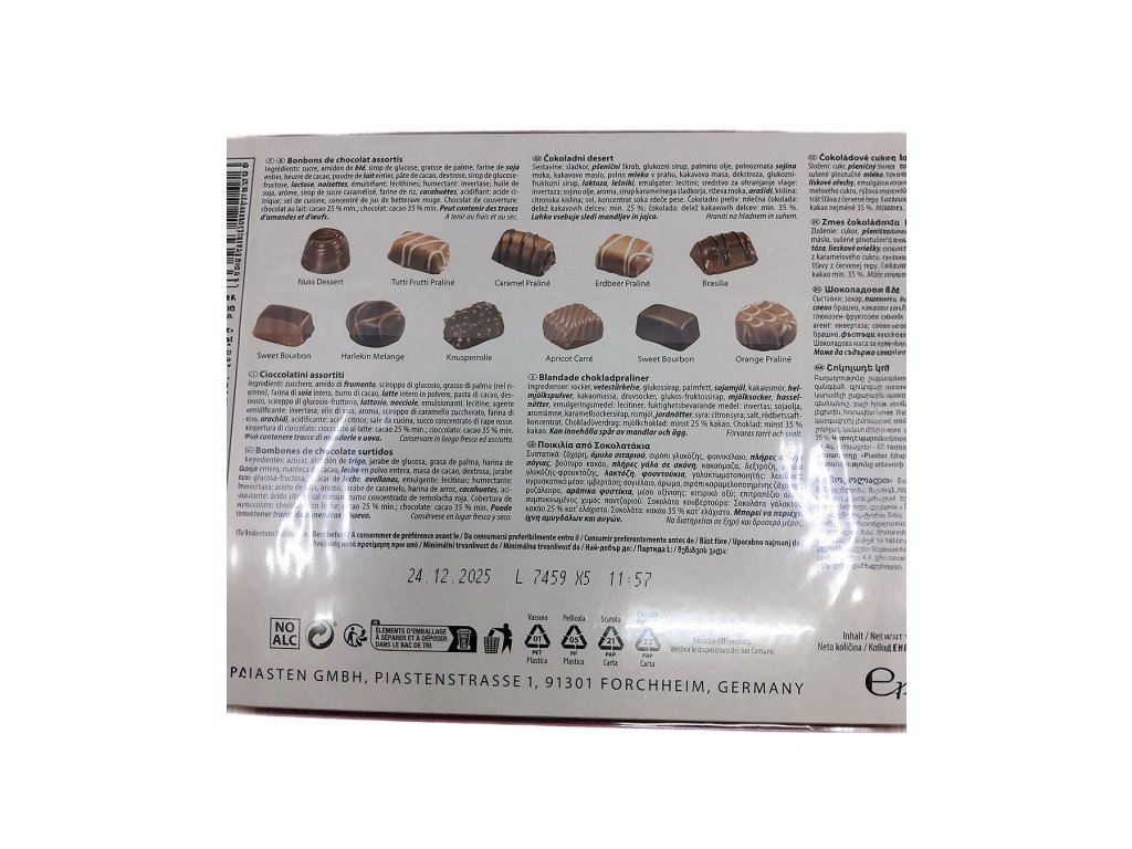 Elegantná bonboniéra, ktorá ukrýva výber tých najlahodnejších čokoládových kúskov, pripravených potešiť každého milovníka sladkých chvíľ. V krásnom a štýlovom balení nájdete pestrú kolekciu plnených bonbónov s rozmanitými náplňami, ktoré rozmaznávajú chuťové poháriky: od jemných orieškových krémov, cez lahodný nugát, až po klasické kakaové a mliečne náplne. Každý bonbón je obalený v kvalitnej mliečnej alebo tmavej čokoláde, ktorá sa rozplýva na jazyku a dodáva každému kúsku hĺbku a eleganciu.