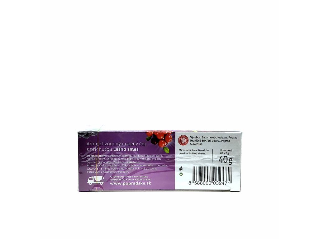 Aromatizovaný ovocný čaj s príchuťou Lesná zmes.