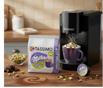Príprava je neuveriteľne jednoduchá – vďaka systému TASSIMO si túto delikatesu pripravíte pohodlne doma jediným stlačením tlačidla. Bez čakania, bez zložitostí – len čistý moment radosti, ktorý si môžete vychutnať kedykoľvek počas dňa. Či už si chcete spríjemniť pokojné ráno, dopriať sladkú pauzu popoludní alebo si večer vytvoriť chvíľku oddychu, Milka Pistachio sa stane vaším malým únikom do sveta pohody a sladkého relaxu.