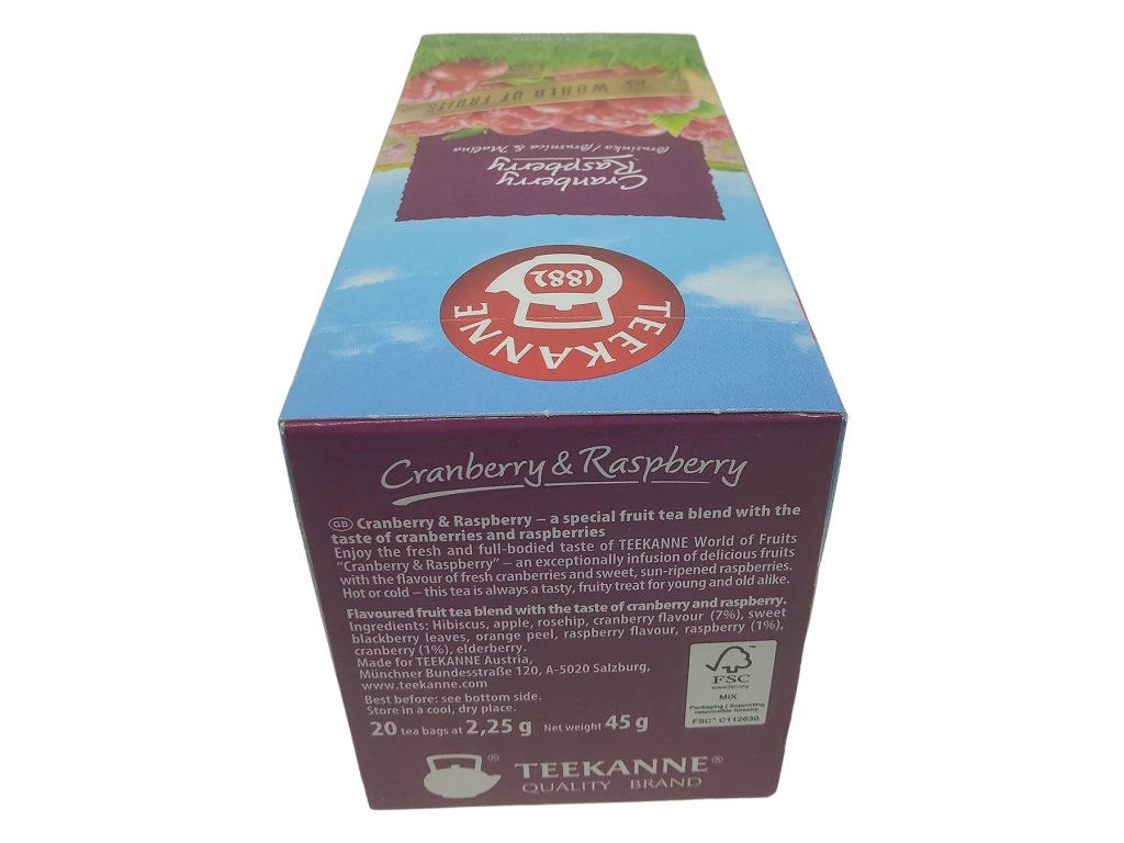 Brusnice dodávajú čaju typickú šťavnatosť a energickú kyselkavosť, ktorá prebúdza zmysly a osviežuje telo, zatiaľ čo maliny prinášajú jemnú sladkosť a hebkosť, čím celý zážitok krásne zjemňujú. Teekanne Cranberry & Raspberry je čaj, ktorý poteší nielen počas chladných večerov, keď vás zahreje a rozvonia celý domov, ale aj ako ľadový čaj v horúcich letných dňoch, keď sa stane dokonalým spoločníkom pri osviežení.